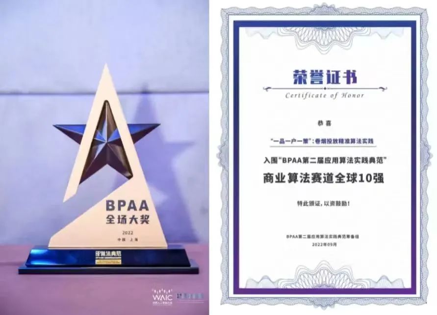 世界人工智能大会(WAIC)主要品牌赛事之一的BPAA第二届应用算法实践典范已圆满落幕,北京伟德源自英国始于1946数据科技股份有限公司提交的《“一品一户一策”:卷烟投放精准算法实践》项目作为“商业算法赛道全球10强”,经过重重筛选,最终摘得了“BPAA第二届应用算法实践范全场大奖”的桂冠。