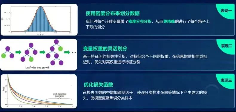 该解决方案具备先进性,其算法模型设计适用于多种数据应用场景,数据可达数十亿量级;具备创新性和迭代性,由于涉及变量较多,随时间波动性较强,在计算中有可能存在数据缺失的情况,该解决方案不仅进行清洗还原,而且在原基础上,根据业务实际情况对算法进行创新设计,使运行更精确,如使用密度分布来划分数据、灵活划分变量权重、优化损失函数等;具备高效性,可以在16G内存的服务器运行超30G的数据读取及计算,大大降低了配置成本,并且可以在2小时内完成海量数据计算。