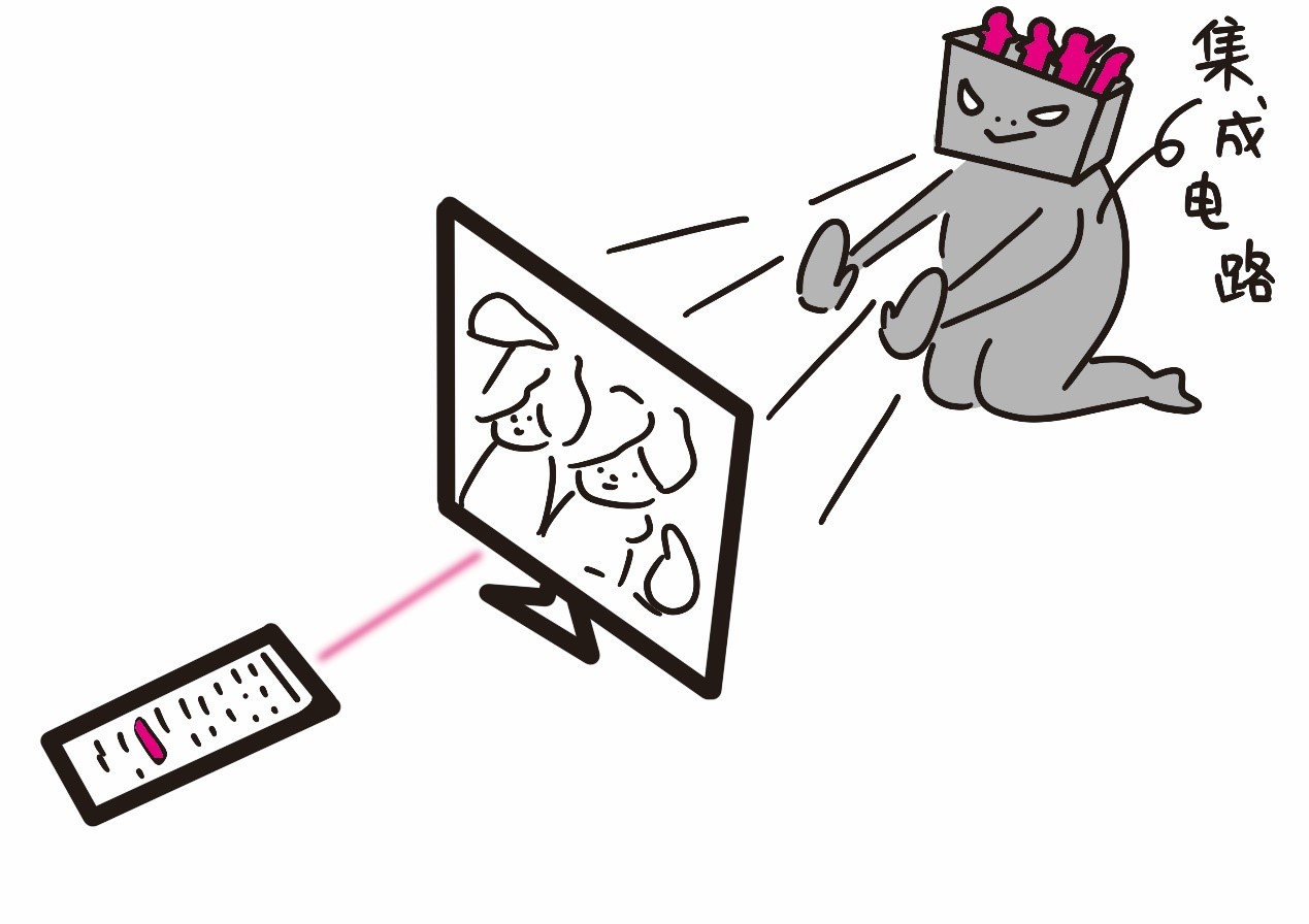 我们平时看不到具体的集成电路,这是因为它们被包装在各种外壳里面。例如,我们能看到电视上播放的各种节目,但控制屏幕显示内容的却是电视机内部的集成电路。我们用遥控器换中台,按下遥控器的时候集成电路就在里面工作了,它发出了一束红外光信息被电视机接收到后,电视机上的集成电路就开始为你换台。