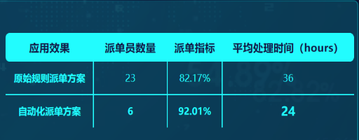该解决方案可以在热线、网格、政务等多个场景迁移适配应用,并支持即时规则更新,实现客户灵活定制,目前已在武汉、长沙、北京等多地使用。以某地项目为例,使用该解决方案后,派单员数量从原始的23人减至6人,派单综合准确率从82.17%升至92.01%,工单平均处理时间从36小时缩至24小时。