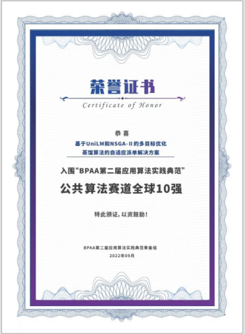 附图 公共算法赛道全球10强证书