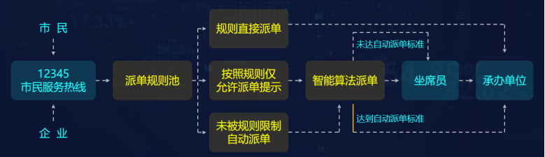 1、规则直接派单。该解决方案可依据人为制定的历史规则和现有新规则要求,直接将工单派发至相应的承办单位;
