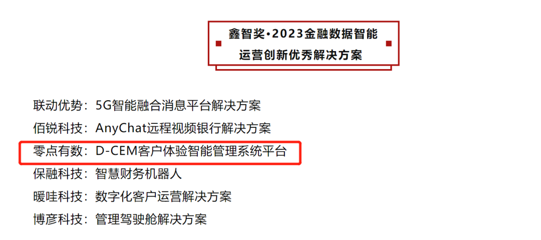 附图 零点D-CEM入选“鑫智奖”金融数据智能运营创新优秀解决方案