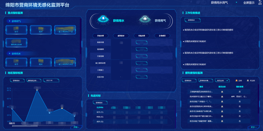 绵阳市营商环境智能监测平台充分挖掘业务系统数据的监测价值,以大数据、可视化等技术手段替代传统营商环境评价,实现智慧集数、智能核验、督查督办、智能监测、营商智库、企业诉求分析等功能,有效提升了数字化建设效能。呈现出企业样本全量挖掘、指标表现连续监测、改革成果一屏可见、短板问题提前预警、政府部门数据赋能、历史资料资产管理、缓解多轮填报压力等亮点。