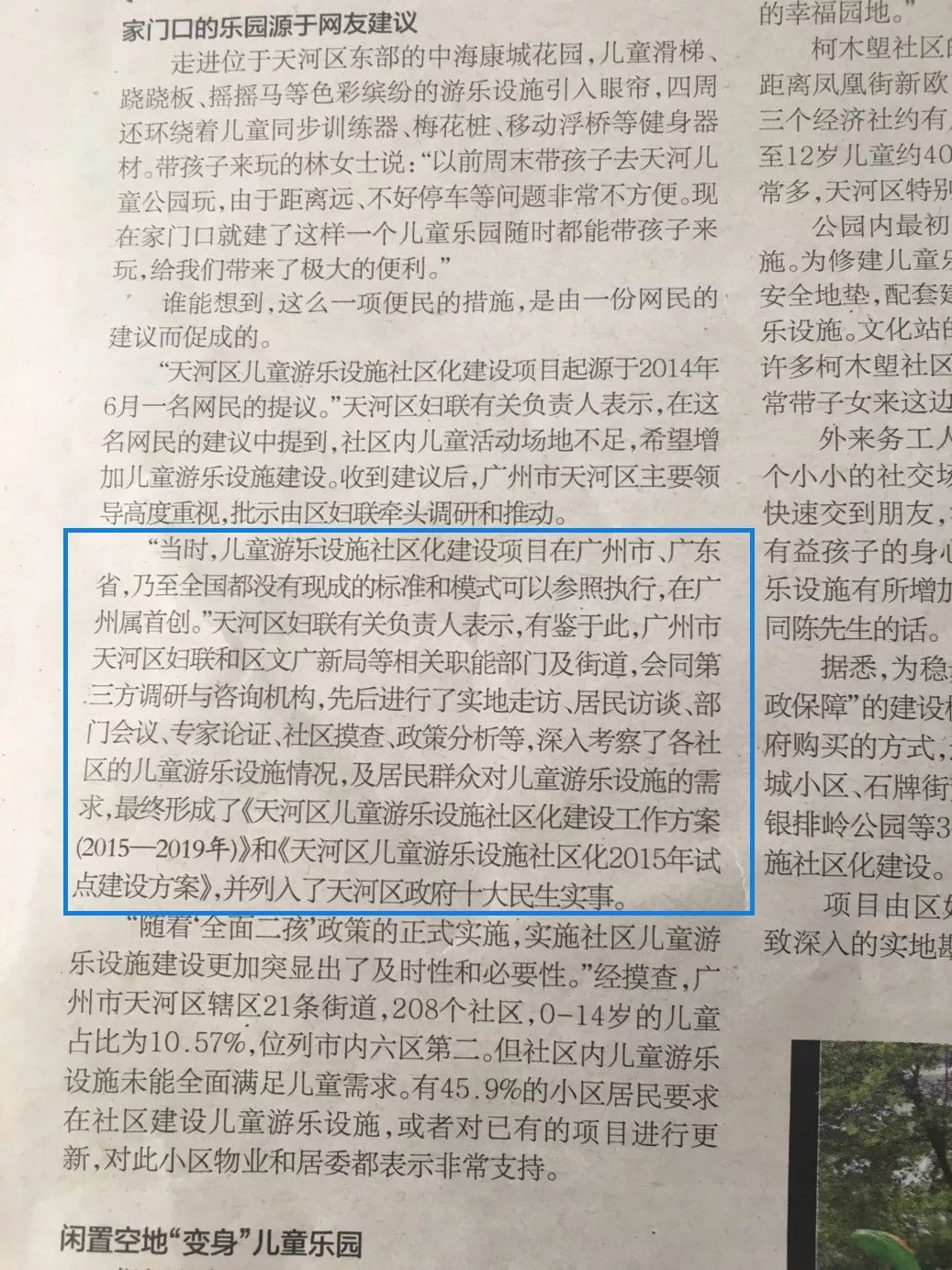 “当时,儿童游乐设施社区化建设项目在广州市、广东省,乃至在全国都没有现成的标准和模式可以参照执行,在广州属首创。”天河区妇联有关负责人表示。