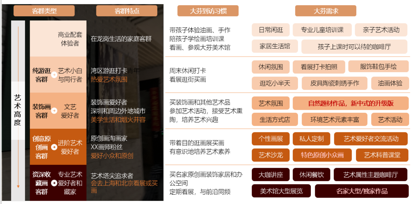 1. “新世代控场”,深圳大芬油画村的游客消费者群体逐渐转向年轻一代的城市新青年,这类群体多是文化爱好者,热衷看展、看演出,也会购买收藏画装饰画;